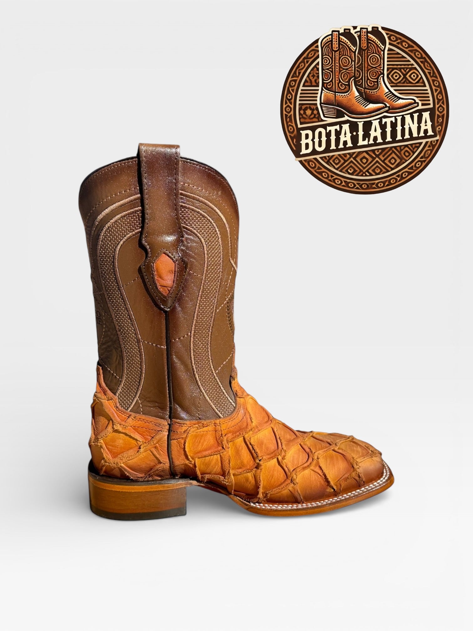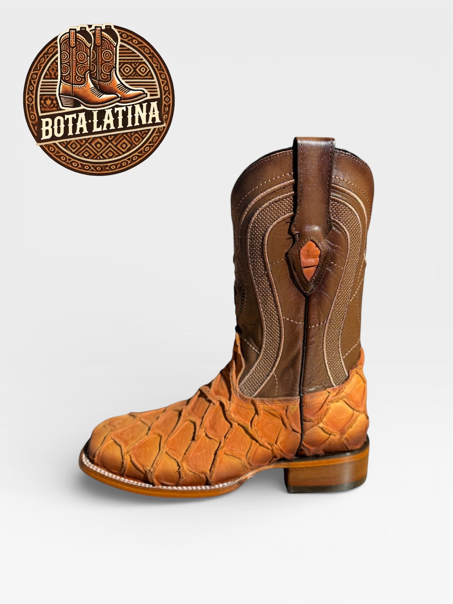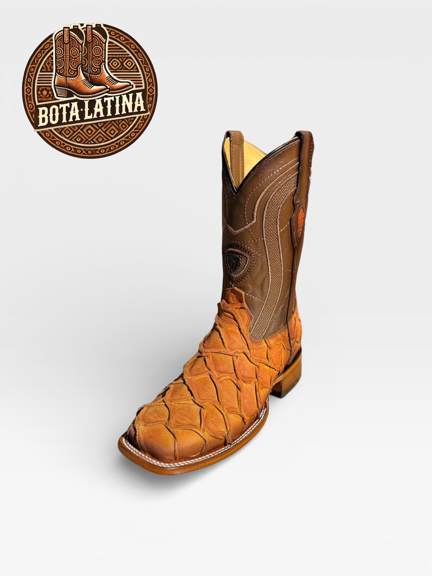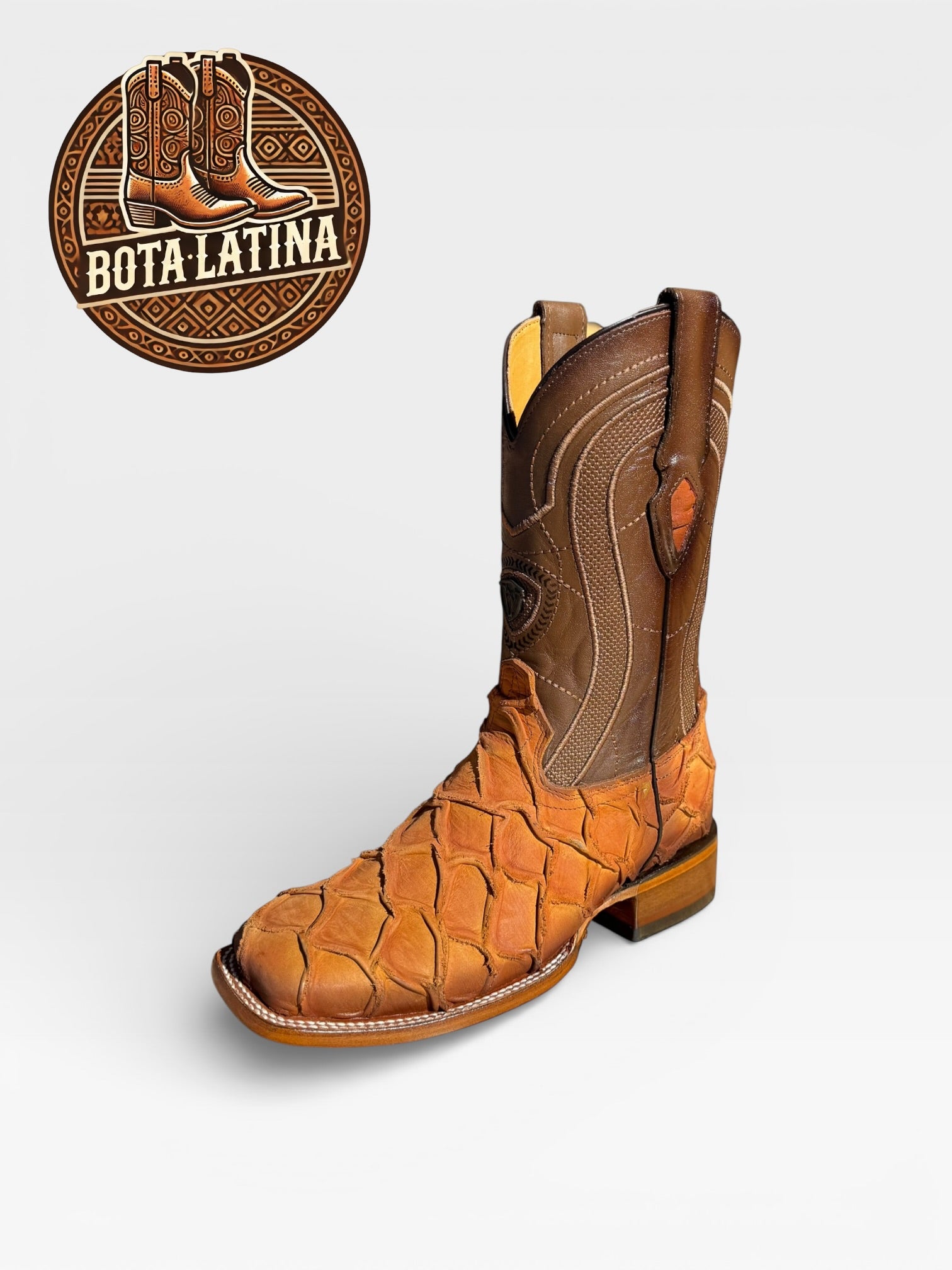 Monster Fish Orix es una bota vaquera elaborada en piel exótica Monster Fish en tono Orix, destacando por su textura profunda y apariencia elegante con carácter fuerte.