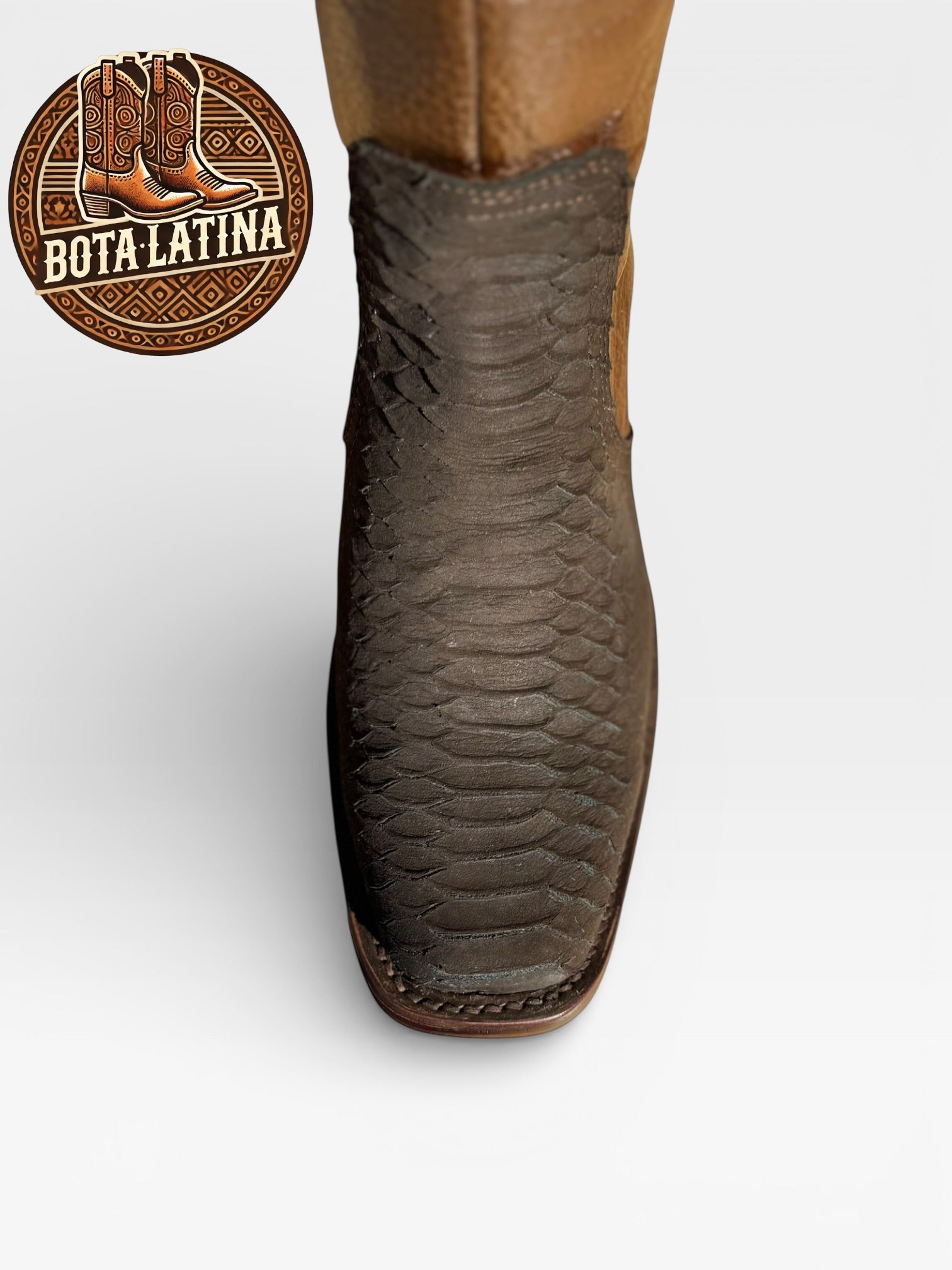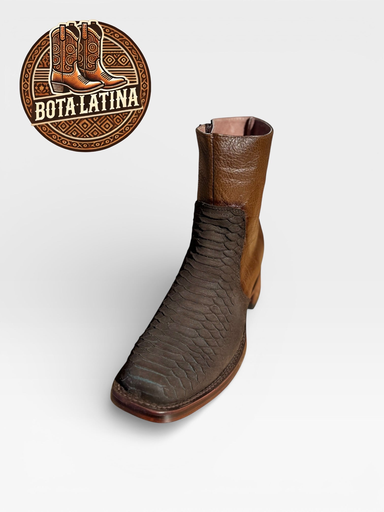 Python Nobuck Café Dubai es un botín vaquero de lujo elaborado con auténtica piel de python nobuck en tono café, diseñado para quienes buscan elegancia, resistencia y estilo en cada paso.