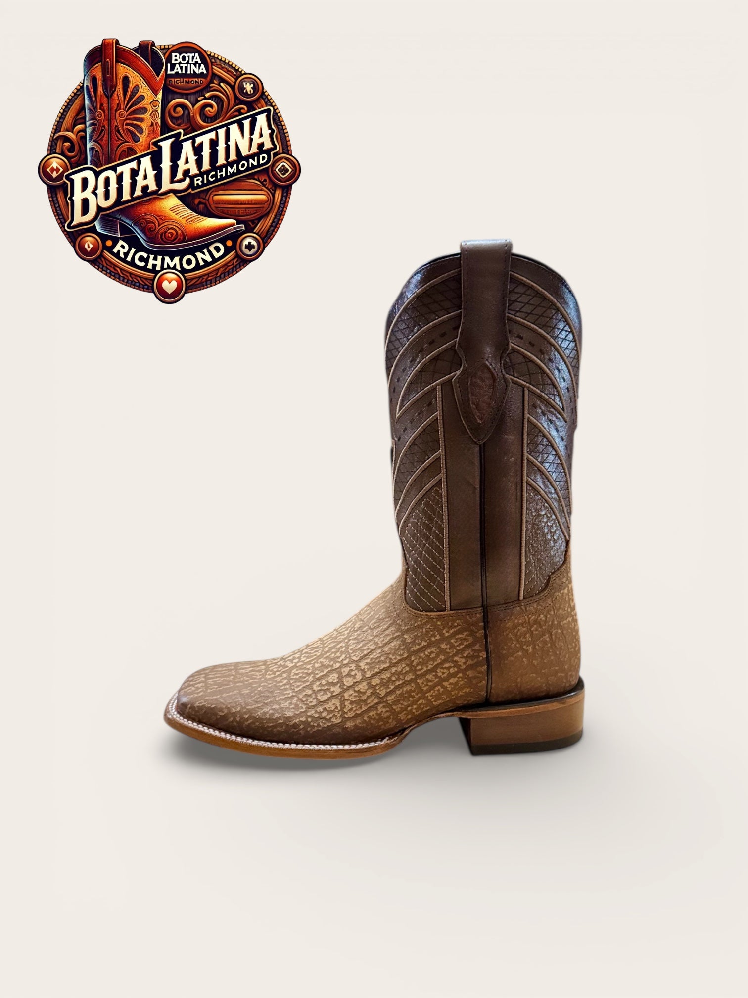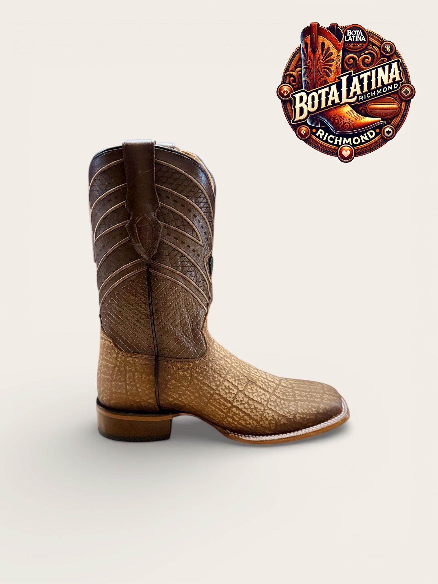 Elefante Miel es una bota vaquera de estilo clásico elaborada con piel tipo elefante en elegante tono miel, diseñada para ofrecer presencia, comodidad y durabilidad en cualquier ocasión.